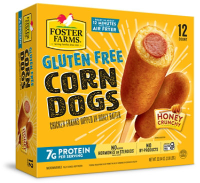 You can put the bite on Foster Farms Gluten Free Corn Dogs for 599 at Safeway. They come in boxes of 6 9 12 16 20 and 36 so theres a size for every appetite and family. Frozen cook for 5 minutesHeating times may vary with individual ovens adjust accordingly.
